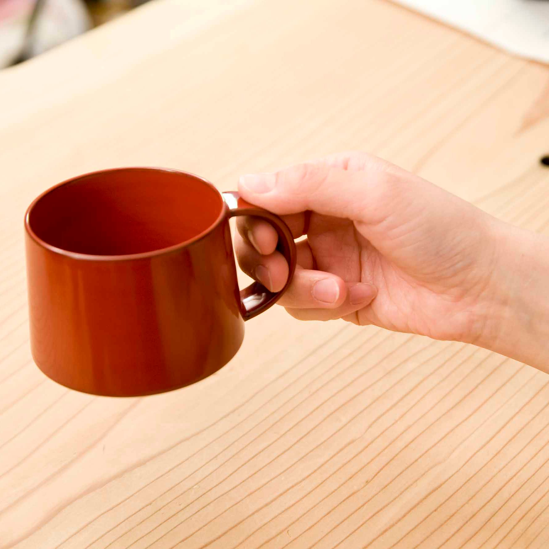 天然木を使用することで熱伝導率が低くなり、温かい飲み物を入れても器が熱くならず、しっかりと手に持つことができる。